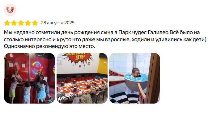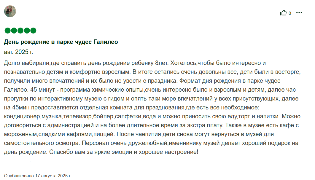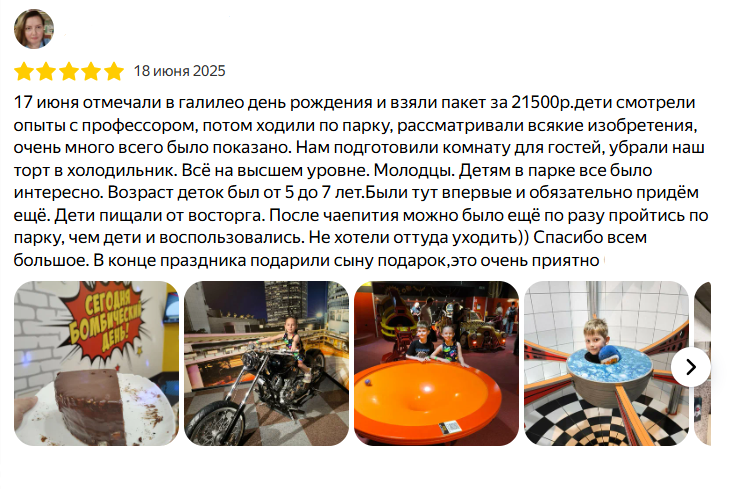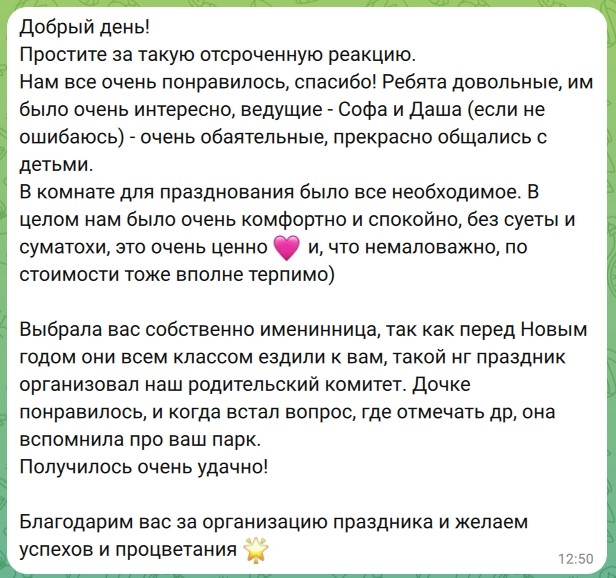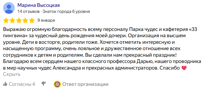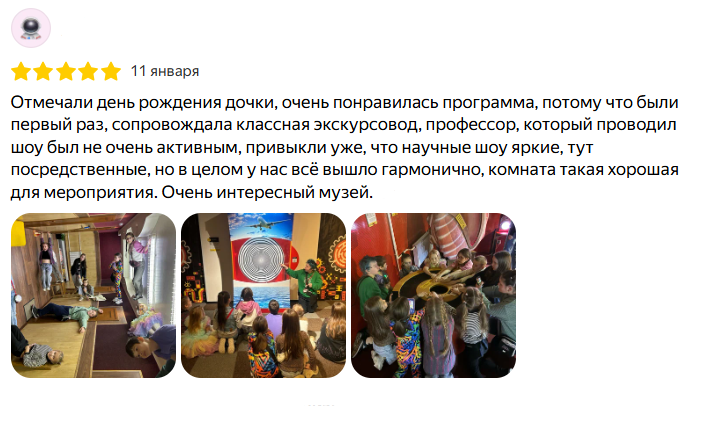 В основной формат праздника входит 2 бесплатных билета взрослом. Если взрослые идут на программу и экскурсию в Парк, они также являются участниками. В случае когда количество гостей больше 10 человек, необходимо произвести доплату за каждого участника. Если взрослые не хотят участвовать, то на время основного мероприятия они могут ожидать в зоне кафетерия, а на чаепитие (последние 45 минут) уже присоединиться без доплат.